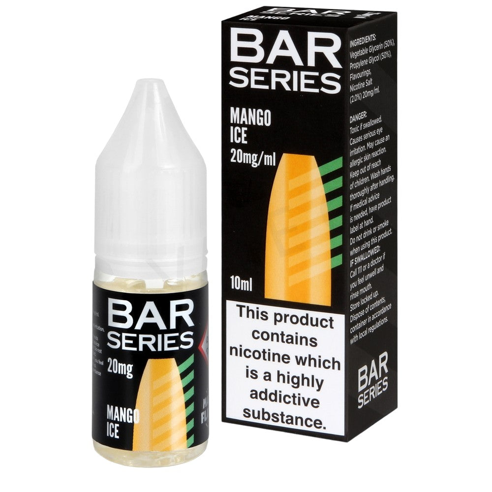 Experience the tropical fusion of mangoes and menthol with Bar Series - Mango Ice Nic Salt E-liquid 10ml - 5mg, meticulously crafted to transport your taste buds to a refreshing paradise with every puff.