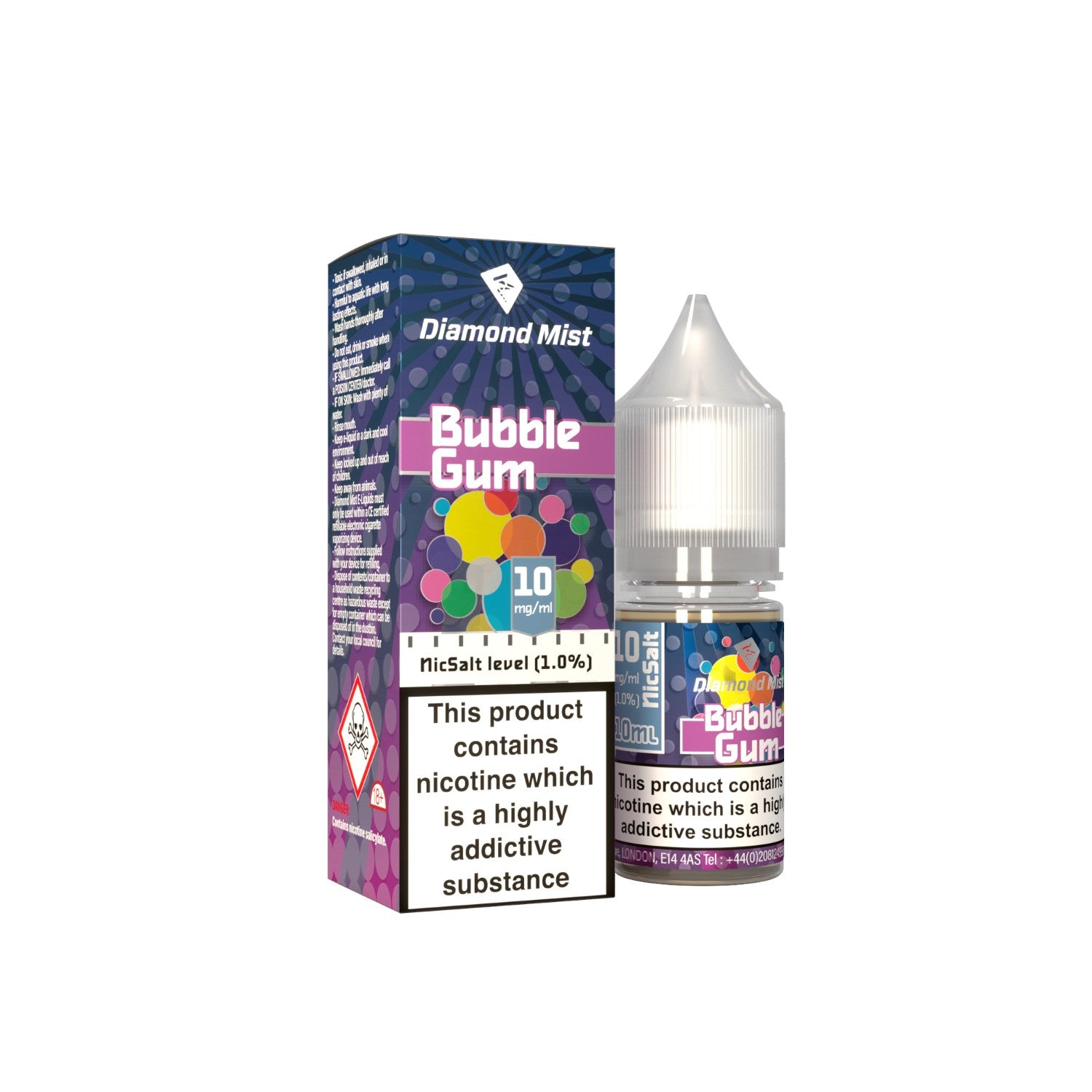 Indulge in the sweet and nostalgic taste of bubblegum flavour and elevate your vaping experience with Diamond Mist's Bubble Gum Nic Salt E-liquid. Whether you're seeking a fun and fruity vape or simply craving a taste of your childhood, this e-liquid is sure to satisfy your sweet tooth with every puff.