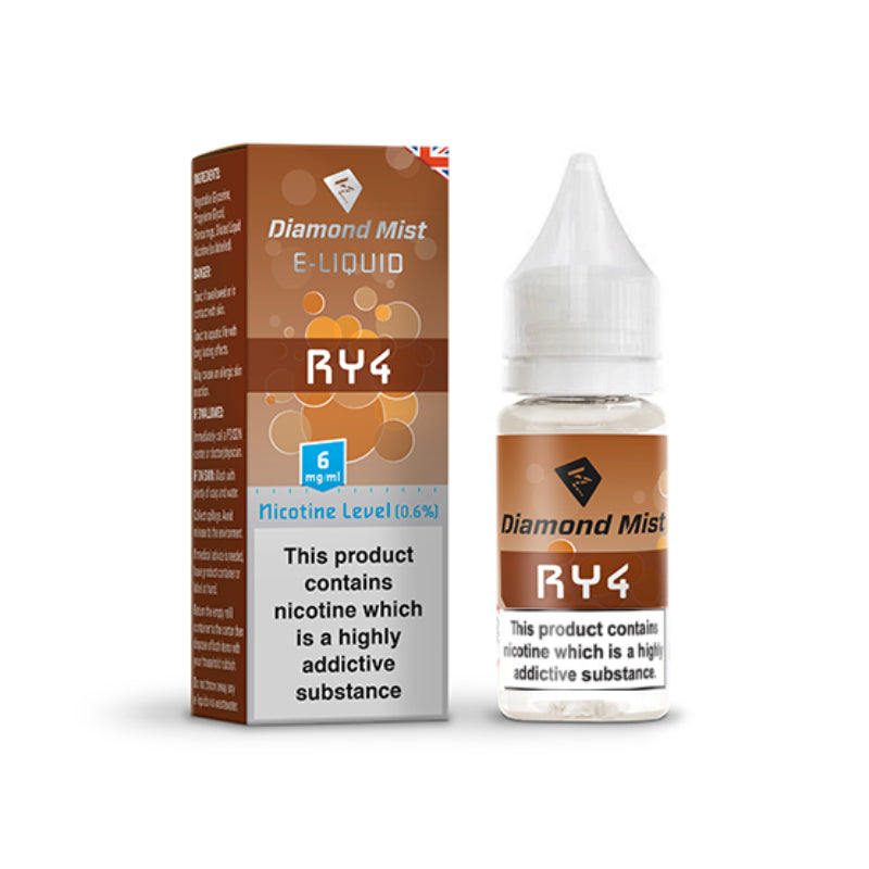 Available in convenient 10ml bottles, Diamond Mist RY4 E-liquid is designed for ease of use and compatibility with a wide range of vaping devices. Elevate your vaping experience with the rich and smooth flavour of Diamond Mist RY4 E-liquid today.