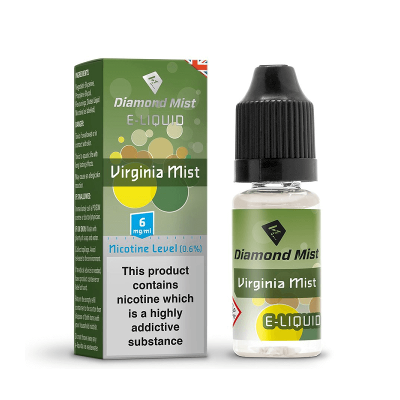 Introducing Diamond Mist Virginia Mist Tobacco E-liquid 10ml - 6mg, a sophisticated blend of rich yet light Virginia tobacco flavour, reminiscent of golden Virginia leaves.