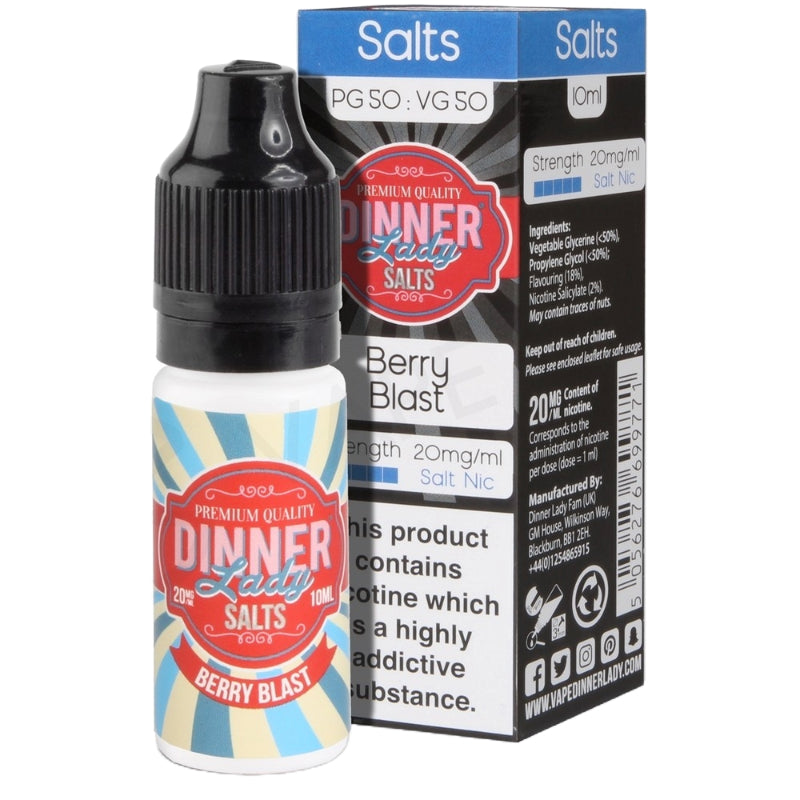 Featuring salt nicotine, Berry Blast is available in 10ml bottles with a nicotine strength of 10mg. The use of nic salt results in a smoother experience with a lighter throat hit, all while retaining the desired nicotine strength. Elevate your vaping moments with the delightful fusion of sweet strawberries and tart raspberries in Dinner Lady's Berry Blast.