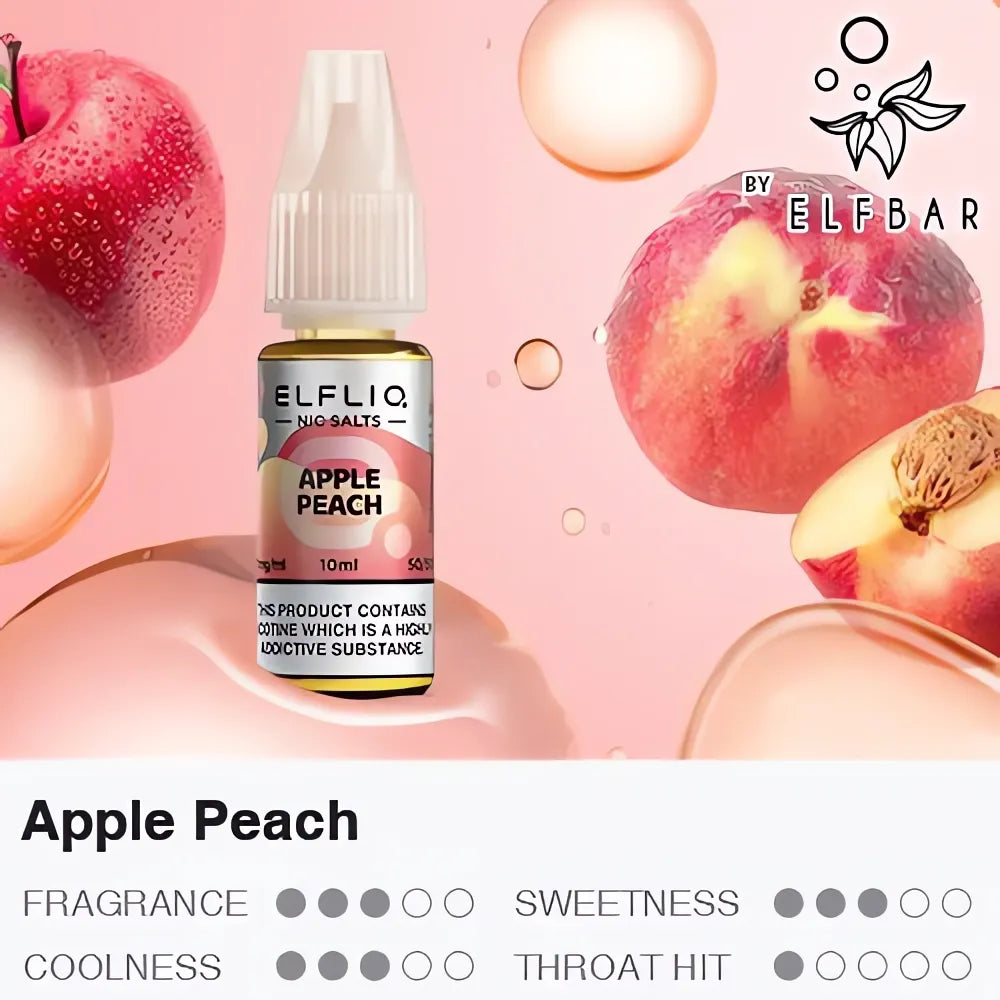 Introducing the ElfLiq Apple Peach 10ml nic salt e-liquid, part of the exciting new range of flavors from ElfBar's 10ml e-liquid collection, also featured in their popular ElfBar disposables. Available in both 10mg and 20mg nic salts.
