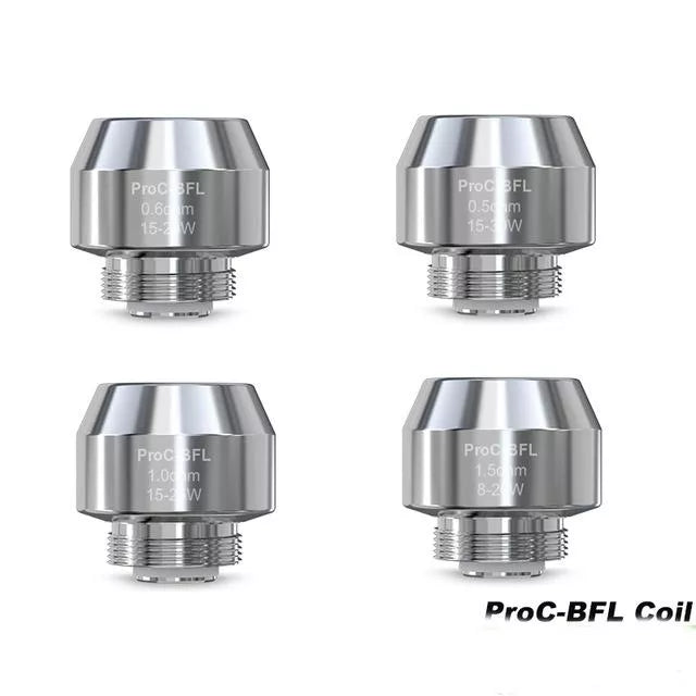 Keep your low-power, mouth-to-lung (MTL) vaping sessions going strong for weeks with this 5 Pack of Joyetech ProC-BFL Replacement Coils. This versatile coil range even includes a 0.5 Ohm coil with slightly increased airflow for direct-lung (DL) vaping in the 15 to 30 Watt range.