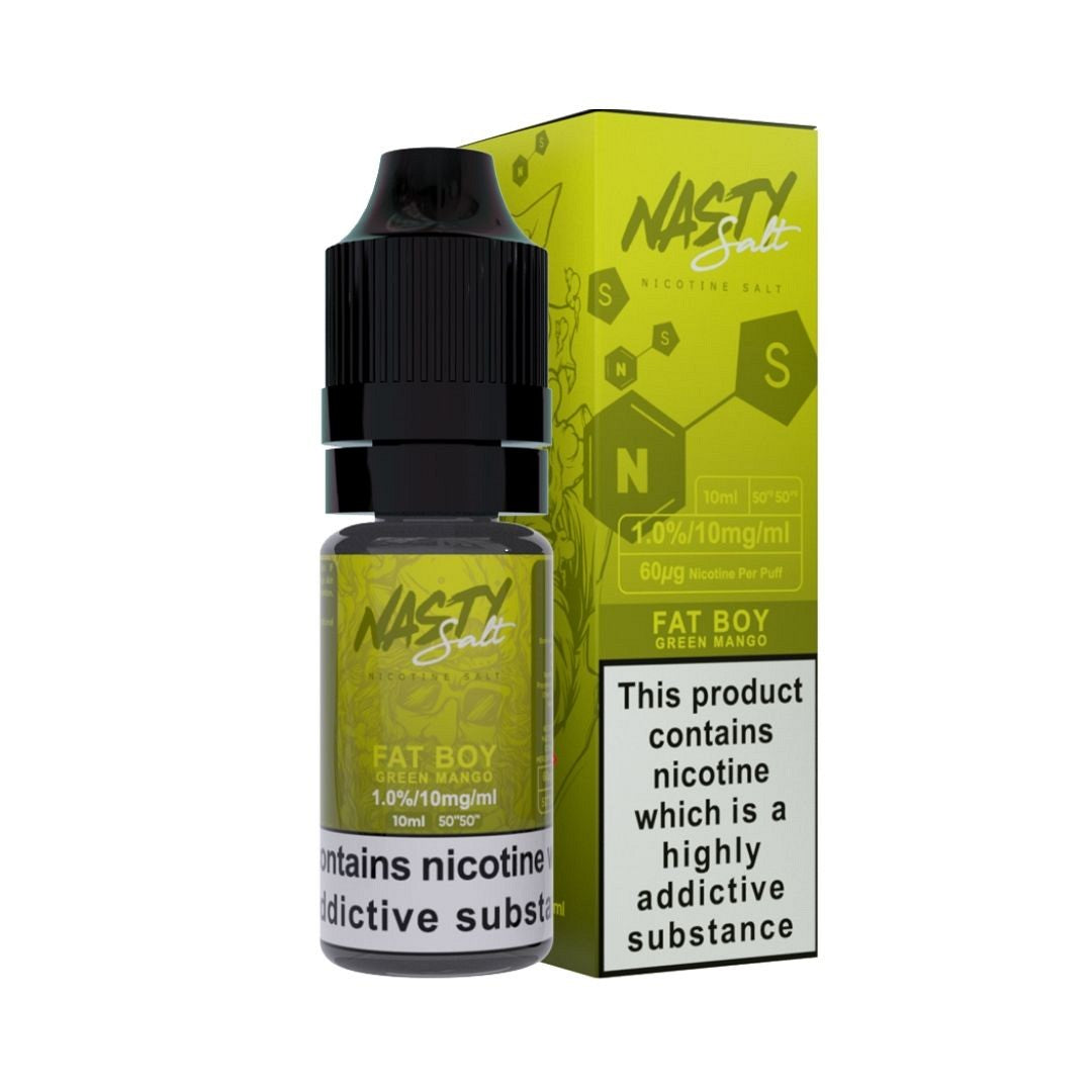 Immerse yourself in the tropical oasis of flavours with Nasty Salt - Fat Boy Nic Salt E-liquid 10ml - 20mg. This exquisite blend features a tantalizing combination of sweet, ripe mangos, zesty lime, and sharp mint, creating a layered flavour profile with a fragrant, cooling edge.