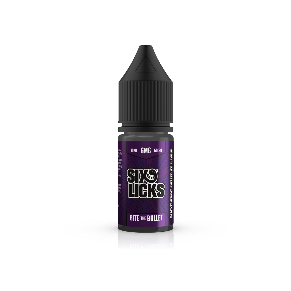 Indulge in the mysterious and complex flavor of Six Licks Bite the Bullet. This e-liquid offers a secret blend of mixed dark fruits that tantalizes your taste buds.